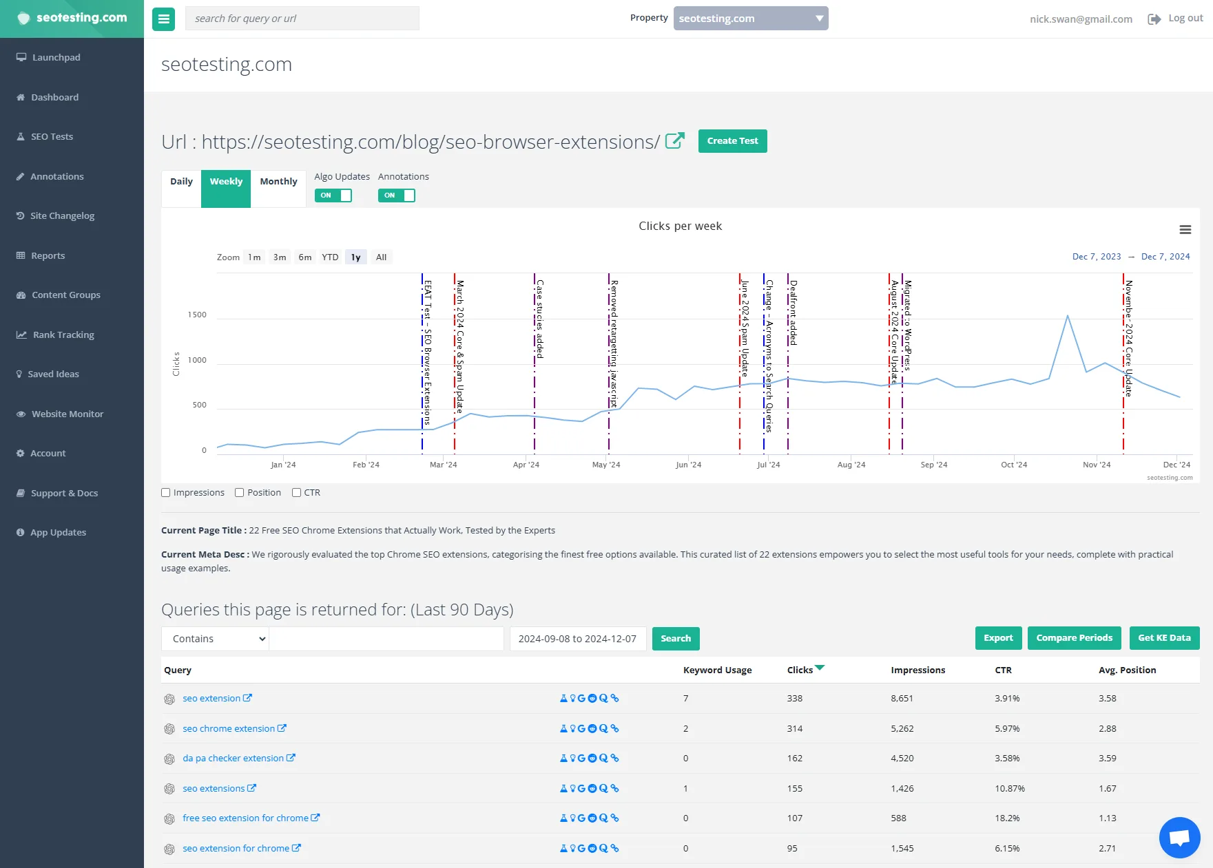 Google Search Console is a treasure trove of information, but its limitations can hold you back. SEOTesting removes those barriers, allowing you to access, analyze, and act on your data without constraints. From limitless exports to detailed page and query insights, we make Search Console data work for you.